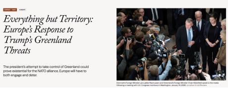 △美国外交关系委员会网站刊文称,欧洲人目前采取的策略是提供“领土以外的一切”,以回应美国的经济和安全关切。