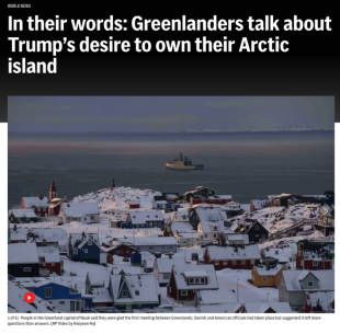 △美联社报道,特朗普要求占领格陵兰岛,这使得格陵兰岛成为地缘政治热点。