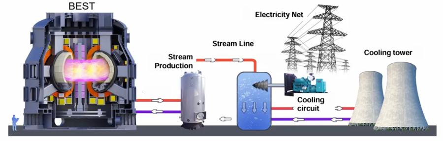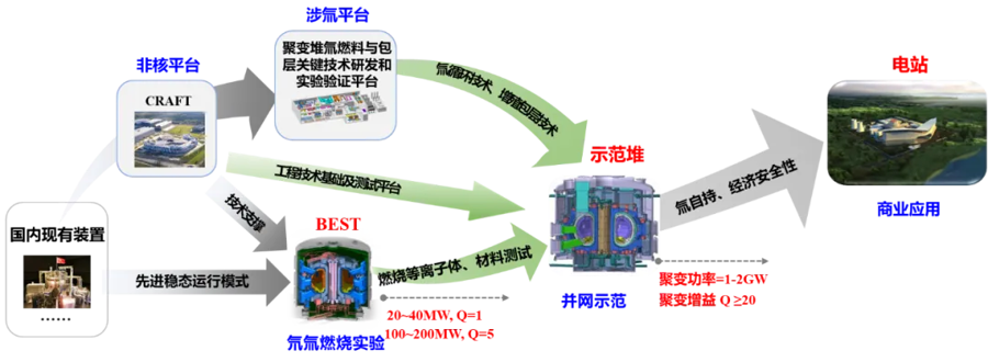 作为“中试平台”,BEST将重点攻克三大挑战性问题:材料与等离子体-壁相互作用(PWI)物理,验证全钨壁在长脉冲、高能量通量下的使用寿命与性能稳定性;实验包层模块(TBM)的性能验证,为商业化聚变堆的能量提取与氚增殖提供关键数据;氘氚燃烧等离子体的能量与粒子排出,优化偏滤器系统的设计,确保能量高效排出且不损伤装置。这些研究成果将直接服务于聚变新能提出的“三步走”战略:以BEST为基础,推进聚变工程示范堆(CFEDR)建设,最终实现首个商业聚变堆的落地,目标在20年内让聚变能实现全球商业应用。